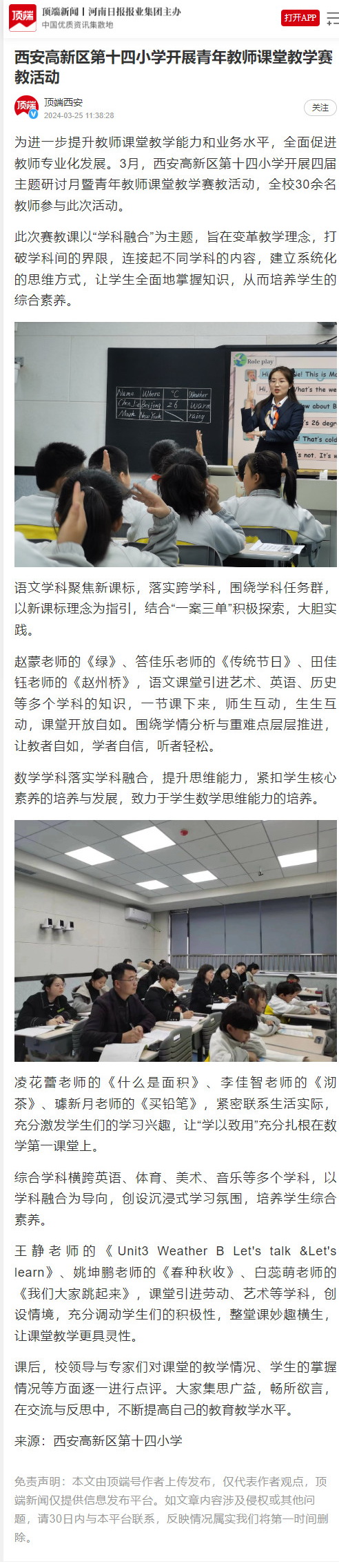 | 西安高新区第十四小学开展青年教师课堂教学赛教活动 |